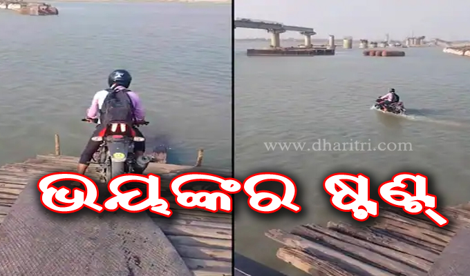ନଦୀ ଭିତରେ ଖୁବ୍ ଜୋର୍ରେ ବାଇକ୍ ଚଳାଇଲେ ଯୁବକ, ଭିଡିଓ ଦେଖିଲେ…