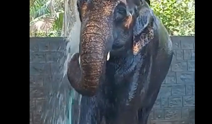 ପାଇପ୍ ଧରି ଗାଧୋଉଛି ହାତୀ