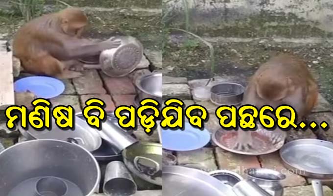 ବାସନ ମାଜୁଛି ମାଙ୍କଡ଼, ଭିଡିଓ ଦେଖିଲେ…