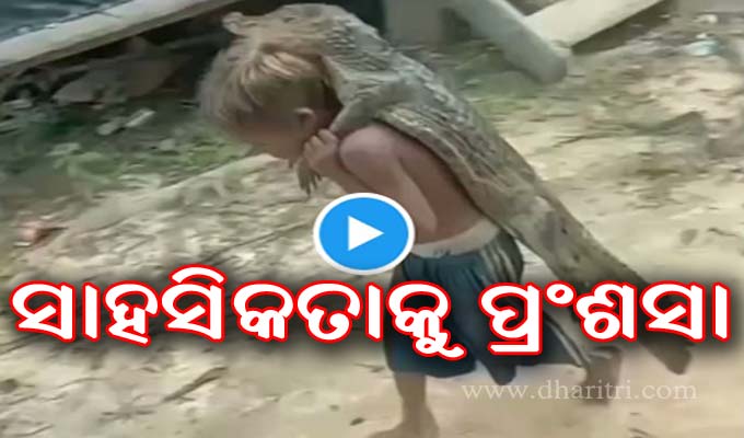 କୁମ୍ଭୀରକୁ ପିଠିରେ ପକାଇ ଦୌଡୁଛି କୁନି ବାଳକ, ଭିଡିଓ ଦେଖିଲେ…