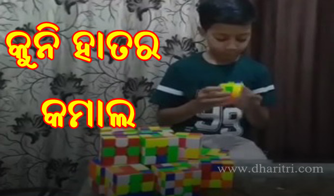 ୫ ମିନିଟ୍ରେ ୩୫ ରୁବିକ୍ କ୍ୟୁବ୍ ସମାଧାନ କଲେ କୁନି ବାଳକ