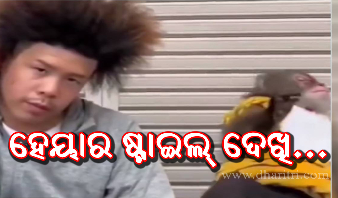 ଯୁବକଙ୍କ ହେୟାର ଷ୍ଟାଇଲ ଦେଖି ମାଙ୍କଡ଼ ବେହୋସ, ଭିଡିଓ ଦେଖିଲେ…