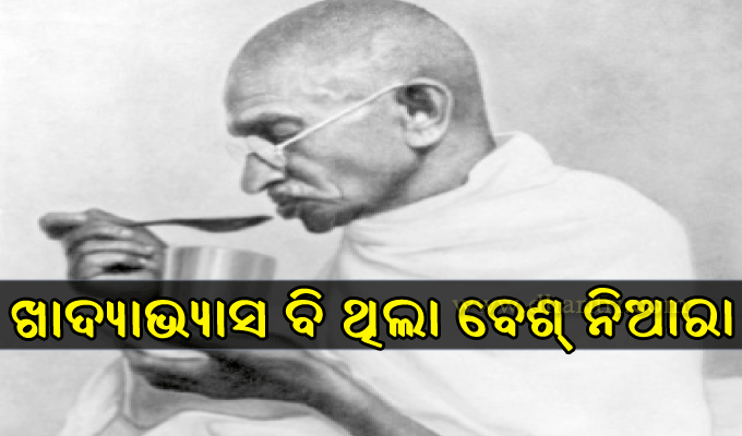 ଜାତିର ପିତା ମହାତ୍ମା ଗାନ୍ଧୀ। ସେ ଚିର ନମସ୍ୟ। ସମୟ ସିନା ବଦଳୁଥିବ, ହେଲେ ବଦଳିବ ନାହିଁ ତାଙ୍କ ପାଇଁ ସମସ୍ତଙ୍କ ମନରେ ଥିବା ଭଲ ପାଇବା। ତେବେ ତାଙ୍କର କେବଳ ନୀତି, ଆଦର୍ଶ ନୁହେଁ ତାଙ୍କ ଖାଦ୍ୟାଭ୍ୟାସ ବି...