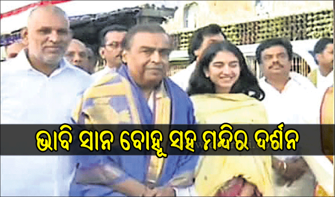 ତିରୁପତି: ରିଲାଏନ୍ସ ଇଣ୍ଡଷ୍ଟ୍ରିର ମାଲିକ ମୁକେଶ ଅମ୍ବାନୀ ଆନ୍ଧ୍ର ପ୍ରଦେଶର ଭେଙ୍କଟେଶ୍ୱର ମନ୍ଦିର ଦର୍ଶନ କରିଛନ୍ତି। ସାନ ପୁଅ ଅନନ୍ତଙ୍କ ଭାବିସ୍ତ୍ରୀ ରାଧିକା ମର୍ଚାଣ୍ଟ ଏବଂ ରିଲାଏନ୍ସ ରିଟେଲ୍ ଲିମିଟେଡ୍ର ନିର୍ଦ୍ଦେଶକ ଅମ୍ବାନୀଙ୍କ ସହ ମନ୍ଦିର ଦର୍ଶନ କରିଛନ୍ତି। ମନ୍ଦିର...