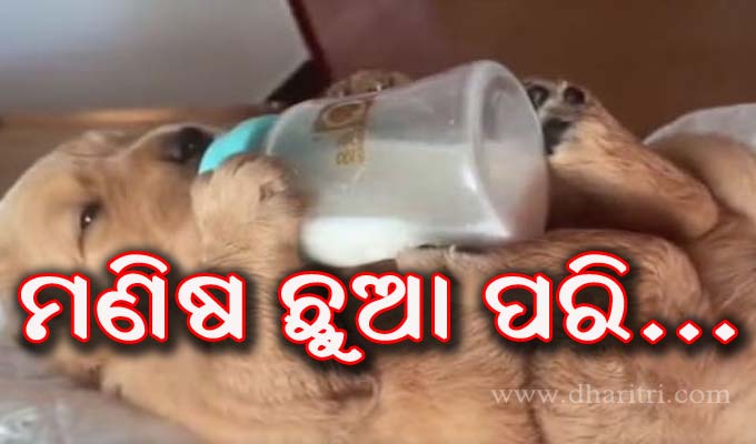 ମଣିଷ ପିଲା ପରି କ୍ଷୀର ପିଉଛି କୁକୁର, ଭିଡିଓ ଦେଖିଲେ…