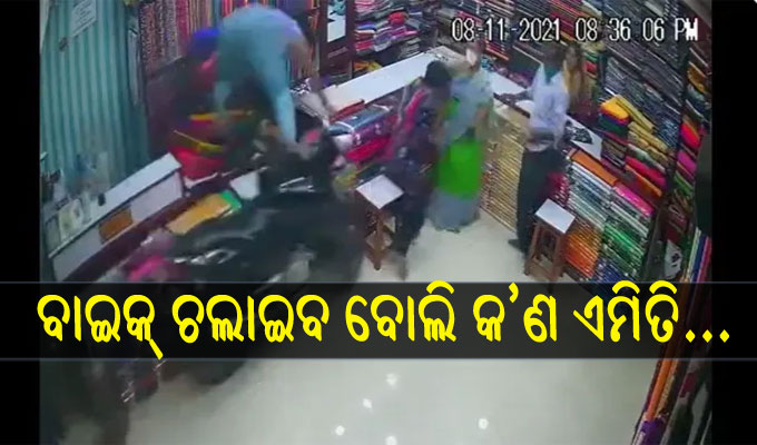 ଡ୍ରେସ୍ ଦୋକାନରେ ଧସେଇ ପଶିଲା ଦ୍ରୁତ ଗତିରେ ଥିବା ବାଇକ୍, ପରେ ଯାହା ହେଲା ଦେଖିଲେ…