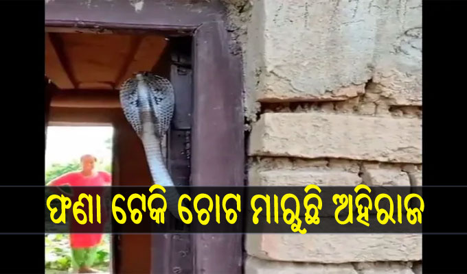 କବାଟ ସନ୍ଧିରେ ଏଭଳି ଲୁଚି ରହିଥିଲା ଅହିରାଜ, ଫଣା ଟେକି…
