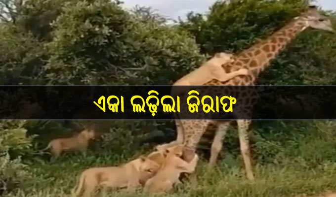 ୬ ସିଂହ ସହ ଏକା ଲଢ଼ିଲା ଜିରାଫ; କିଏ ପିଠିରେ ଚଢ଼ିଲା ତ କିଏ ଗୋଡକୁ କାମୁଡ଼ି ଧରିଲା; ଶେଷରେ…