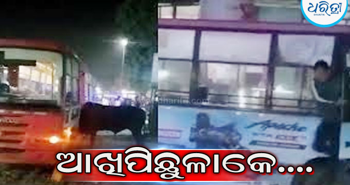 viral video ବସ୍ରୁ ଯାତ୍ରୀ ଓହ୍ଲାଉ ଓହ୍ଲାଉ ପଶିଗଲା ଷଣ୍ଢ: ପରେ ଯାହାହେଲା ଦୌଡିଲେ ଡ୍ରାଇଭର କଣ୍ଡକ୍ଟର