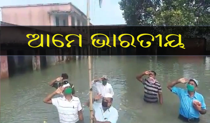 ଅଣ୍ଟାଏ ପାଣିରେ ପଶି କଲେ ଜାତୀୟ ପତାକା ଉତ୍ତୋଳନ