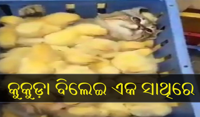 ବାକ୍ସ ଭିତରେ କୁକୁଡ଼ା ଛୁଆଙ୍କ ମଧ୍ୟରେ ବିଲେଇ: ଦେଖିଲେ ଲାଗିବ ଆଶ୍ଚର୍ଯ୍ୟ