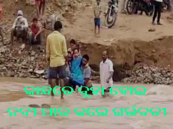 ନା ଅଛି ରାସ୍ତା ନା ଅଛି ପୋଲ, ଗର୍ଭବତୀଙ୍କୁ କାନ୍ଧରେ ବୋହିକି ହସ୍ପିଟାଲ ନେଲେ ପରିବାର ଲୋକ