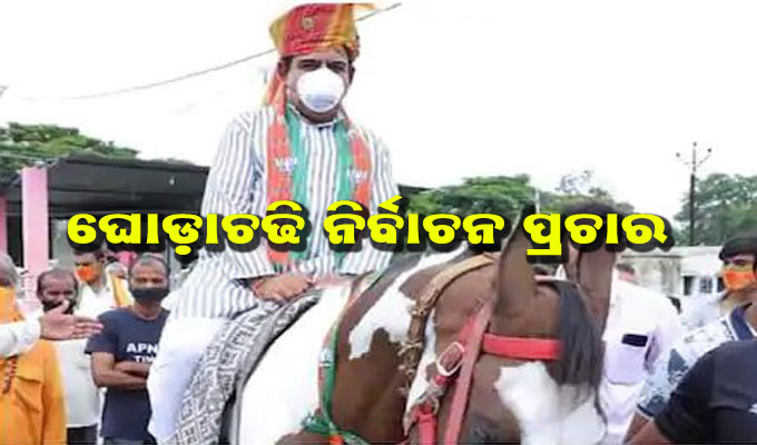ଘୋଡ଼ାଚଢି ନିର୍ବାଚନ ପ୍ରଚାରରେ ବାହାରିଲେ ଭାଜପା ନେତା