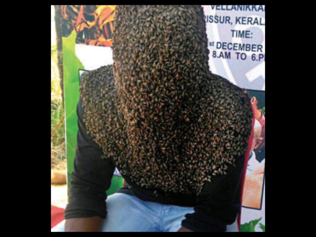 ୬୦ ହଜାର ମହୁମାଛିଙ୍କୁ ୪ ଘଣ୍ଟା ମୁହଁରେ ବସାଇ ଯୁବକଙ୍କ ବିଶ୍ୱରେକର୍ଡ
