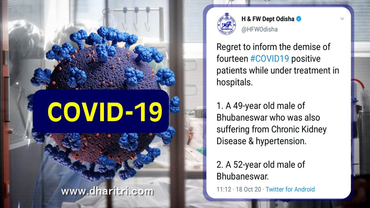 ଭୁବନେଶ୍ୱର,୧୮।୧୦(ବ୍ୟୁରୋ): ରାଜ୍ୟରେ ରବିବାର ଆଉ ୧୪ ଜଣଙ୍କ ମୁଣ୍ଡ ନେଇଛି କରୋନା। ଏହାକୁ ମିଶାଇ ରାଜ୍ୟରେ କରୋନା ଜନିତ ମୃତ୍ୟୁ ସଂଖ୍ୟା ୧୧୩୫ ରେ ପହଞ୍ଚିଥିବା ରାଜ୍ୟ…