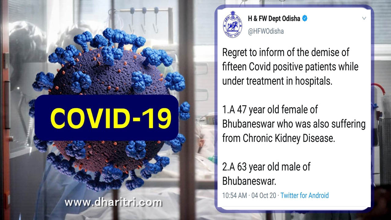 ଭୁବନେଶ୍ୱର, ୩।୧୦(ବ୍ୟୁରୋ): ରାଜ୍ୟରେ କରୋନାରେ ଶନିବାର ଆଉ ୧୭ଜଣଙ୍କ ମୃତ୍ୟୁ ଘଟିଛି। ଏ ନେଇ ରାଜ୍ୟ ସ୍ବାସ୍ଥ ଓ ପରିବାର କଲ୍ୟାଣ ବିଭାଗ ପକ୍ଷରୁ ଏହି ସୂଚନା…
