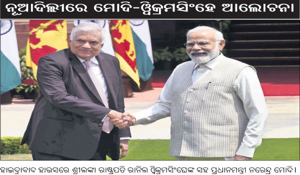 ନୂଆଦିଲ୍ଲୀ,୨୨ା୭: ଭାରତ ଏବଂ ଶ୍ରୀଲଙ୍କା ଆର୍ଥତ୍କ ସହଭାଗିତାରେ ଉଲ୍ଲେଖନୀୟ ବୃଦ୍ଧି ନେଇ ଦୁଇ ଦେଶ ଶୁକ୍ରବାର ମହତ୍ତ୍ୱାକାଂକ୍ଷୀ ଭିଜନ ଡକ୍ୟୁମେଣ୍ଟ ଆପଣାଇଛନ୍ତି। ଭାରତ ଗସ୍ତରେ ଆସିଥିବା ଶ୍ରୀଲଙ୍କା ରାଷ୍ଟ୍ରପତି ରାନିଲ ଓ୍ବିକ୍ରମସିଂଘେ ପ୍ରଧାନମନ୍ତ୍ରୀ ନରେନ୍ଦ୍ର ମୋଦିଙ୍କ ସହ ବିଭିନ୍ନ ପ୍ରସଙ୍ଗରେ ଆଲୋଚନା…