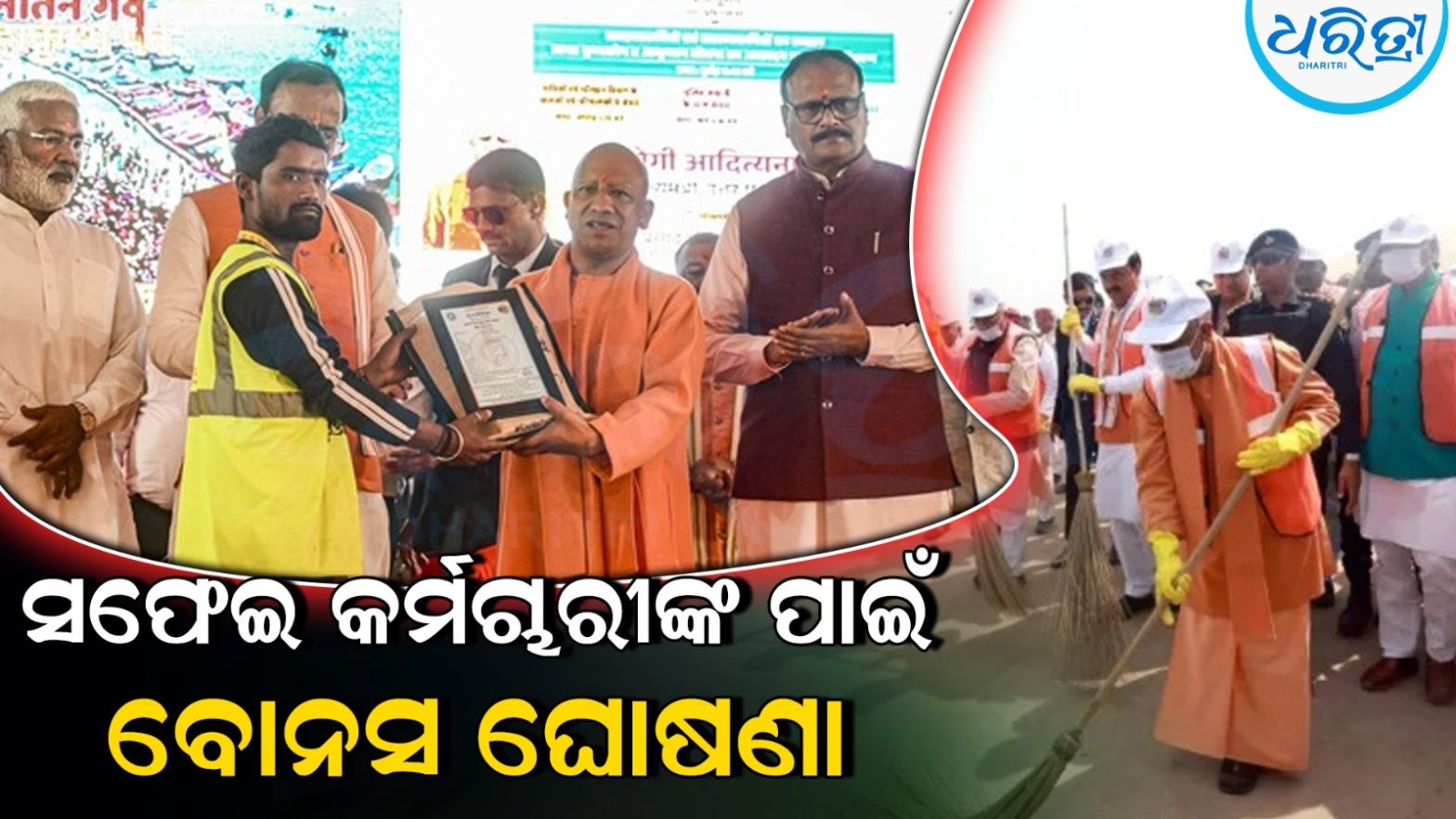 ପ୍ରୟାଗରାଜ,୨୭।୨:ମହାକୁମ୍ଭ ସମାପ୍ତ ହେବା ପରେ ପ୍ରୟାଗରାଜରେ ପହଞ୍ଚିଥିବା ମୁଖ୍ୟମନ୍ତ୍ରୀ ଯୋଗୀ ଆଦିତ୍ୟନାଥ ଏକ ବଡ଼ ଘୋଷଣା କରିଛନ୍ତି। ମହାକୁମ୍ଭରେ ନିୟୋଜିତ ଉତ୍ତର ପ୍ରଦେଶର ସଫେଇ କର୍ମଚାରୀମାନଙ୍କୁ ଅତିରିକ୍ତ ୧୦,୦୦୦ ଟଙ୍କାର ବୋନସ ମିଳିବ। ଏହା ବ୍ୟତୀତ ପ୍ରତି ମାସରେ ସର୍ବନିମ୍ନ ୧୬,୦୦୦…