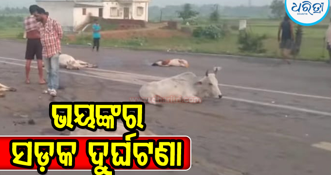 ରକ୍ତରଞ୍ଜିତ ରାଜରାସ୍ତା: ବସ ଧକ୍କାରେ ଚାଲିଗଲା ୧୬ ଗୋରୁଙ୍କ ଜୀବନ
