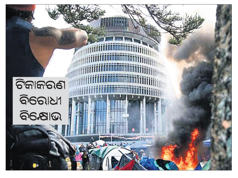 ଓ୍ବେଲିଙ୍ଗଟନ୍,୩।୩: କୋଭିଡ୍ ମହାମାରୀ ଟିକାକରଣକୁ ବିରୋଧ କରି ନ୍ୟୁଜିଲାଣ୍ଡ ରାଜଧାନୀ ଓ୍ବେଲିଙ୍ଗଟନ୍ରେ ୨୩ ଦିନ ଧରି ଜାରି ରହିଛି ବିକ୍ଷୋଭ। ବିକ୍ଷୋଭକାରୀମାନେ ଓ୍ବେଲିଙ୍ଗଟନ୍ରେ ଥିବା ପାର୍ଲାମେଣ୍ଟ ଗ୍ରାଉଣ୍ଡରେ ଟେଣ୍ଟ ବାନ୍ଧି ପ୍ରତିବାଦ କରୁଥିବାବେଳେ ବୁଧବାର ପୋଲିସ ଓ ସେମାନଙ୍କ ମଧ୍ୟରେ...