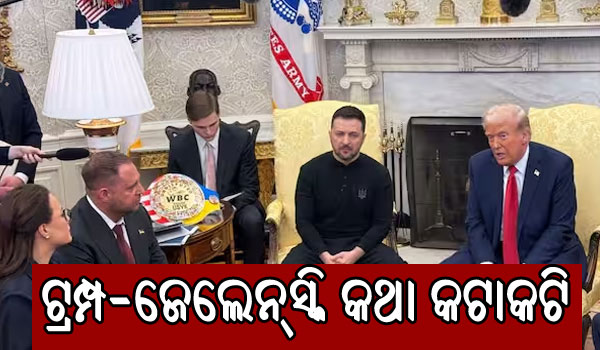 ଓ୍ବାଶିଂଟନ,୩।୧: ହ୍ବାଇଟ ହାଉସର ଓଭାଲ ଅଫିସରେ ଆମେରିକା ରାଷ୍ଟ୍ରପତି ଡୋନାଲ୍ଡ ଟ୍ରମ୍ପ ଏବଂ ୟୁକ୍ରେନ ରାଷ୍ଟ୍ରପତି ଭୋଲୋଡିମିର ଜେଲେନସ୍କିଙ୍କ ମଧ୍ୟରେ ଯୁକ୍ତିତର୍କ ହୋଇଛି। ଟ୍ରମ୍ପ ଏବଂ ଉପରାଷ୍ଟ୍ରପତି ଜେଡି ଭାନ୍ସ ଜେଲେନସ୍କିଙ୍କୁ ସମ୍ମାନ ଦେଉ ନ ଥିବା ଅଭିଯୋଗ ହୋଇଛି।...