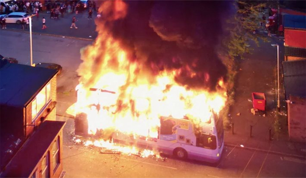 ଲିଡ୍ସରେ ଦଙ୍ଗା ସ୍ଥିତି: ପୋଡି ଦେଲେ ବସ୍