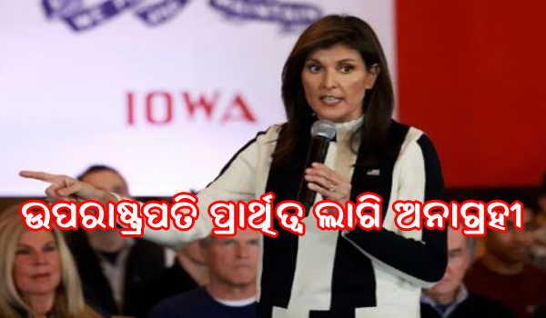 ଓ୍ବାଶିଂଟନ,୧୬।୧: ଆମେରିକା ରାଷ୍ଟ୍ରପତି ନିର୍ବାଚନରେ ପୂର୍ବତନ ରାଷ୍ଟ୍ରପତି ଡୋନାଲ୍ଡ ଟ୍ରମ୍ପ୍ଙ୍କ ଅଧୀନରେ ରିପବ୍ଲିକାନ ଦଳର ଉପରାଷ୍ଟ୍ରପତି ପ୍ରାର୍ଥତ୍ତ୍ୱ ନିମନ୍ତେ ପ୍ରତିଦ୍ୱନ୍ଦ୍ୱିତା କରିବାକୁ ଅନ୍ୟତମ ରାଷ୍ଟ୍ରପତି ପ୍ରାର୍ଥତ୍ତ୍ୱ ଆଶାୟୀ ନିକି ହାଲି ଏବଂ ବିବେକ ରାମସ୍ବାମୀ ଆଗ୍ରହୀ ନ ଥିବା ଜଣାପଡ଼ିଛି।...