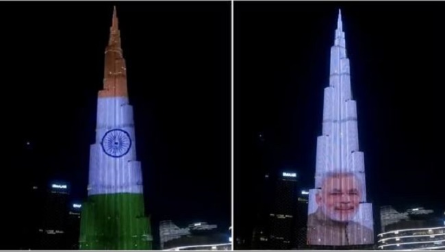 ମୋଦିଙ୍କୁ ସ୍ବାଗତ କରିବାକୁ ତ୍ରିରଙ୍ଗା ରଙ୍ଗରେ ସଜ୍ଜିତ ହେଲା ବୁର୍ଜ ଖଲିଫା