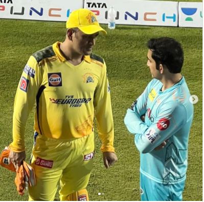 ମୁମ୍ବାଇ,୧।୪: ଚେନ୍ନାଇ ସୁପର କିଙ୍ଗ୍ସକୁ ୬ ଉଇକେଟରେ ପରାସ୍ତ କରି ବିଜୟ ସ୍ବାଦ ଚାଖିଛି ନୂଆ ଫ୍ରାଞ୍ଚାଇଜ ଲକ୍ଷ୍ନୌ ସୁପର ଜ୍ୟାଣ୍ଟ୍ସ। ମ୍ୟାଚ୍ ପରେ ଏକତ୍ରିତ ହୋଇଥିଲେ ଦୁଇ ମହାନ ଖେଳାଳି ପୂର୍ବତନ ଭାରତୀୟ ଅଧିନାୟକ ମହେନ୍ଦ୍ର ସିଂ ଧୋନୀ...