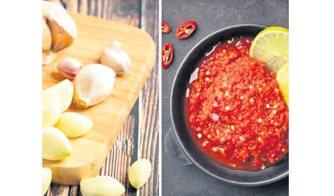 ଆବଶ୍ୟକ ସାମଗ୍ରୀ: କଞ୍ଚାଲଙ୍କା- ୫ଟି, ଲାଲ୍ କ୍ୟାପ୍ସିକମ୍- ୫ଟି, ରସୁଣ- ୨୦ରୁ ୨୫ କୋଲା, ବାଦାମ ତେଲ କିମ୍ବା ଘିଅ- ୪ ବଡ଼ ଚାମଚ, ଲେମ୍ବୁରସ- ଅଧା ଚାମଚ, ଆବଶ୍ୟକ ଅନୁସାରେ ଲୁଣ ଓ ପାଣି। ପ୍ରସ୍ତୁତି ପ୍ରଣାଳୀ: ପ୍ରଥମେ...