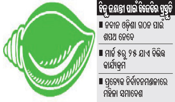 ଭୁବନେଶ୍ୱର,୧।୩(ବ୍ୟୁରୋ): ମାର୍ଚ୍ଚ ୫ ତାରିଖରେ ବିଜୁବାବୁଙ୍କ ୧୦୭ତମ ଜୟନ୍ତୀ ପାଳନ ହେବ। ଏ ନେଇ ବିଜେଡି ପକ୍ଷରୁ ବ୍ୟାପକ ପ୍ରସ୍ତୁତି ଆରମ୍ଭ ହୋଇଛି। ବିଜୁ ଜୟନ୍ତୀ ପାଳନ ନେଇ ବିଜେଡି ସଭାପତି ନବୀନ ପଟ୍ଟନାୟକ ଦଳୀୟ କର୍ମୀମାନଙ୍କୁ ମଙ୍ଗଳବାର ଚିଠି...