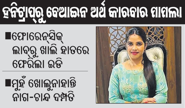 ଭୁବନେଶ୍ୱର, ୧୭।୧୨ (ବ୍ୟୁରୋ): ବ୍ଲାକ୍ମେଲର ଅର୍ଚ୍ଚନା ନାଗ ଓ ତାଙ୍କ ସ୍ବାମୀ ଜଗବନ୍ଧୁ ଚାନ୍ଦଙ୍କୁ ରିମାଣ୍ଡରେ ନେଇ ପ୍ରବର୍ତ୍ତନ ନିର୍ଦ୍ଦେଶାଳୟ (ଇଡି) ମୁହାଁମୁହିଁ ଜେରା କରୁଛି। ପ୍ରଥମ ପର୍ଯ୍ୟାୟରେ ୭ ଦିନିଆ ରିମାଣ୍ଡ ଅବଧି ସମୟରେ ଅର୍ଚ୍ଚନା ଇଡି ଆଗରେ...