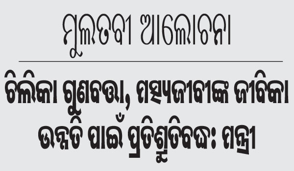 ଭୁବନେଶ୍ୱର,୨୩ା୭(ବ୍ୟୁରୋ): ରାଜ୍ୟ ସରକାର ଉଭୟ ଚିଲିକାର ଗୁଣବତ୍ତା ଓ ମତ୍ସ୍ୟଜୀବୀମାନଙ୍କର ଜୀବିକାକୁ ସାମଗ୍ରିକ ଓ ସାମୂହିକ ଭାବେ ଉନ୍ନତି କରିବା ପାଇଁ ପ୍ରତିଶ୍ରୁତି ବଦ୍ଧ। ଶୁକ୍ରବାର ବିରୋଧୀଙ୍କ ଆଗତ ମୁଲତବୀ ଆଲୋଚନା ଉତ୍ତରରେ ଜଙ୍ଗଲ, ପରିବେଶ ଓ ଜଳବାୟୁ ପରିବର୍ତ୍ତନ...