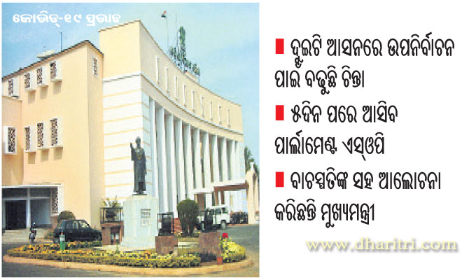 ଭୁବନେଶ୍ୱର, ୧୪।୭(ବ୍ୟୁରୋ): କୋଭିଡ୍-୧୯ର ପ୍ରକୋପ ରାଜ୍ୟରେ ଦିନକୁ ଦିନ ବୃଦ୍ଧି ପାଇବାରେ ଲାଗିଛି। ଏଭଳିସ୍ଥିତିରେ ଆସନ୍ତା ବିଧାନସଭା ଅଧିବେଶନ ଏବଂ ଦୁଇଟି ବିଧାନସଭା ଆସନରେ ଉପନିର୍ବାଚନ ଅନିଶ୍ଚିତତା ମଧ୍ୟକୁ ଠେଲି ହୋଇଯାଇଛି। ଏହି ଦୁଇଟି ଚ୍ୟାଲେଞ୍ଜକୁ ସରକାର କିପରି ଦେଖୁଛନ୍ତି...