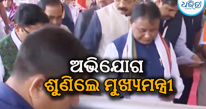 ଭୁବନେଶ୍ୱର,୧୬।୧୨: ଅଭିଯୋଗ ଶୁଣାଣି ପ୍ରକୋଷ୍ଠରେ ସୋମବାର ମୁଖ୍ୟମନ୍ତ୍ରୀ ମୋହନ ଚରଣ ମାଝୀ ଲୋକଙ୍କ ଅଭିଯୋଗ ଶୁଣିଛନ୍ତି। ମୁଖ୍ୟମନ୍ତ୍ରୀ ଲୋକଙ୍କ ପାଖକୁ ଯାଇ ସମସ୍ୟା ଶୁଣିଛନ୍ତି। ଏପରିକି ମୁଖ୍ୟମନ୍ତ୍ରୀ ସବୁ ସମସ୍ୟାର ସମାଧାନ କରିବା ନେଇ ପ୍ରତିଶ୍ରୁତି ଦେଇଛନ୍ତି।