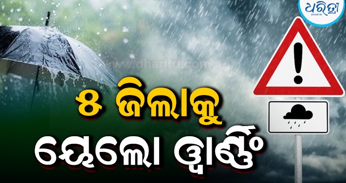 ଘଡ଼ଘଡି ସହ ହେବ ପ୍ରବଳ ବର୍ଷା: ୫ ଜିଲାକୁ ୟେଲୋ ଓ୍ବାର୍ଣ୍ଣିଂ