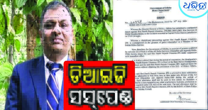 ଭୁବନେଶ୍ୱର,୩୦।୭: ରାଜ୍ୟ ଅଗ୍ନିଶମ ଓ ହୋମଗାର୍ଡ ଡିଆଇଜି ପଣ୍ଡିତ ରାଜେଶ ଉତ୍ତମରାଓ ସସ୍ପେଣ୍ଡ ହୋଇଛନ୍ତି। ରାଜେଶଙ୍କ ସସ୍ପେଣ୍ଡ ନେଇ ଗୃହ ବିଭାଗ ପକ୍ଷରୁ ନିର୍ଦ୍ଦେଶନାମା ହୋଇଛି। ଭାରତୀୟ ପୋଲିସ ସେବା ଆଇନ ଉଲ୍ଲଂଘନ କରିଥିବା ଅଭିଯୋଗରେ ଏହି ନିଷ୍ପତ୍ତି ନିଆଯାଇଛି।...