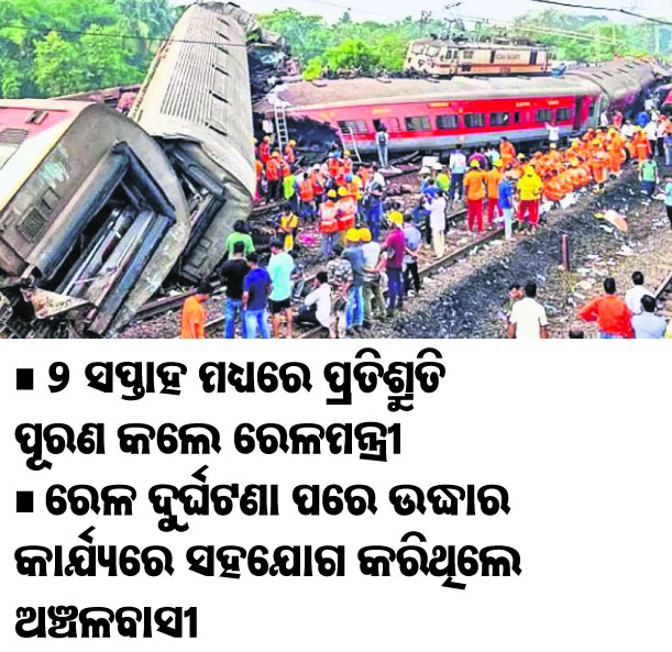 ଭୁବନେଶ୍ୱର, ୭।୭(ଅଭିଜିତ ଦାସ):ବାଲେଶ୍ୱର ଜିଲା ବାହାନଗାଠାରେ ଜୁନ୍ ୨ରେ ରେଳ ଦୁର୍ଘଟଣାରେ ଅନେକ କ୍ଷୟକ୍ଷତି ଘଟିଥିଲା। ଜୁନ୍ ୨୦ ଓ ୨୧ରେ ଏହି ଘଟଣାସ୍ଥଳ ପରିଦର୍ଶନ ଅବସରରେ ରେଳମନ୍ତ୍ରୀ ଅଶ୍ୱିନୀ ବୈଷ୍ଣବ ବାହାନଗା ଅଞ୍ଚଳବାସୀଙ୍କୁ ଉଦ୍ଧାର କାର୍ଯ୍ୟରେ ସହାୟତା ଲାଗି...