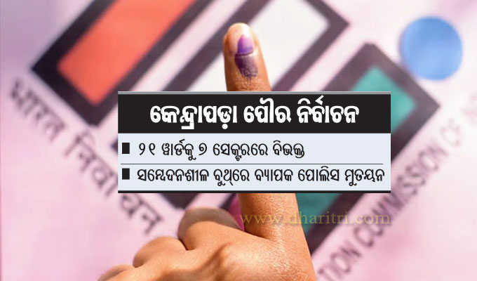 କେନ୍ଦ୍ରାପଡ଼ା ଅଫିସ, ୨୪ା୩: ଦୀର୍ଘ ୧୧ ବର୍ଷ ପରେ କେନ୍ଦ୍ରାପଡ଼ା ପୌରାଞ୍ଚଳରେ ପରିଷଦ ଗଠନ ପାଇଁ ଗୁରୁବାର ଭୋଟ ଗ୍ରହଣ ହେବ। ପୌରାଞ୍ଚଳର ୨୧ ୱାର୍ଡର ୩୬,୫୪୮ ଭୋଟର ଚଳିତ ନିର୍ବାଚନରେ ୮୬ ପ୍ରାର୍ଥୀଙ୍କ ଭାଗ୍ୟ ନିର୍ଦ୍ଧାରଣ କରିବେ। ଚଳିତ...