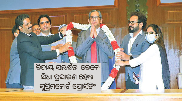 ନୂଆଦିଲ୍ଲୀ,୨୭ା୮(ପି.ଟି.): ଭାରତର ପ୍ରଧାନ ବିଚାରପତି (ସିଜେଆଇ) ପଦରୁ ଜଷ୍ଟିସ୍ ଏନ୍.ଭି. ରମନା ଶୁକ୍ରବାର ଅବସର ନେଇଛନ୍ତି। ତାଙ୍କୁ ସୁପ୍ରିମକୋର୍ଟ ପରିସରରେ ବିଦାୟ ସମ୍ବର୍ଦ୍ଧନା ଦିଆଯାଇଥିଲା। ବହୁସଂଖ୍ୟାରେ ମାମଲା…