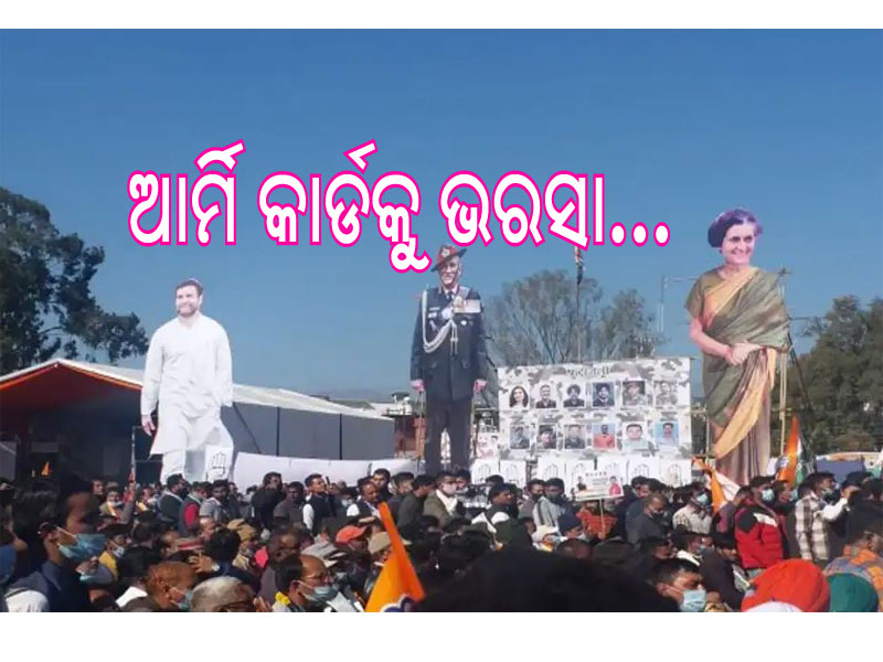 ଭାଜପା-କଂଗ୍ରେସର ଆର୍ମି କାର୍ଡ,ରାହୁଲଙ୍କ ରାଲିରେ ରାଓ୍ବତଙ୍କ କଟ୍ଆଉଟ୍…