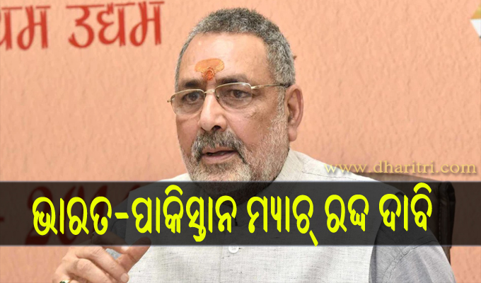 ଯୋଧପୁର, ୧୭।୧୦: ଜମ୍ମୁ-କଶ୍ମୀରରେ ହିନ୍ଦୁମାନଙ୍କ ଉପରେ ହୋଇଥିବା ଆକ୍ରମଣକୁ ଦୃଷ୍ଟିରେ ରଖି ଆଗାମୀ ଦିନରେ ହେବାକୁ ଥିବା ଭାରତ-ପାକିସ୍ତାନ ମ୍ୟାଚ୍ର ପୁନଃବିଚାର କରିବାକୁ ପଡ଼ିବ ବୋଲି କେନ୍ଦ୍ର ମନ୍ତ୍ରୀ ଗିରିରାଜ ସିଂ କହିଛନ୍ତି। ସେ ରବିବାର ଯୋଧପୁର ଗସ୍ତରେ ଯାଇ...
