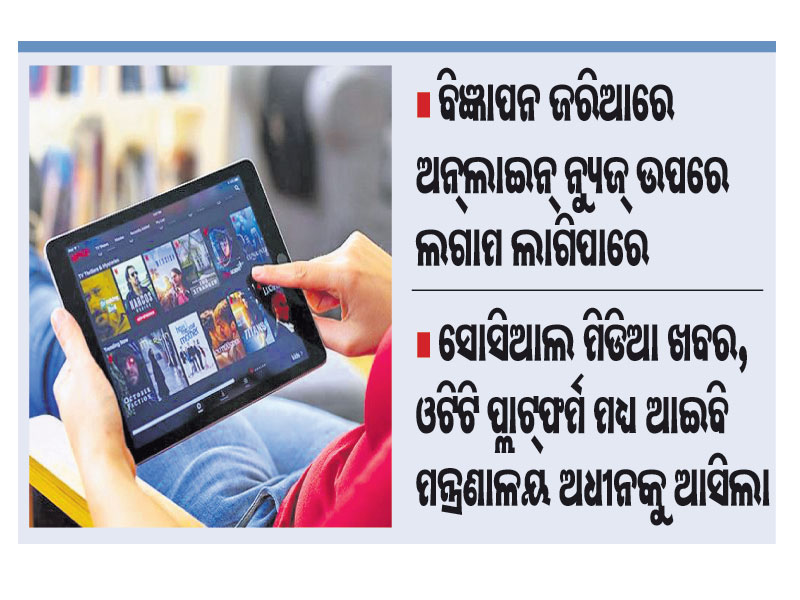 ନୂଆଦିଲ୍ଲୀ,୧୨ା୧୧: କେନ୍ଦ୍ରର ନରେନ୍ଦ୍ର ମୋଦି ସରକାର ଓ୍ବେବ୍ ମିଡିଆ ପ୍ଲାଟ୍ଫର୍ମ ଓ ଅନ୍ଲାଇନ୍ରେ ପ୍ରଦର୍ଶିତ ଫିଲ୍ମ ତଥା ଅଡିଓ ଭିଜୁଆଲ କାର୍ଯ୍ୟକ୍ରମଗୁଡ଼ିକୁ ନିଜ ଅଧୀନକୁ ନେଇଛନ୍ତି। ଫଳରେ ଏଣିକି ଏହିସବୁ ଅନ୍ଲାଇନ୍ ପ୍ରୋଗ୍ରାମ ସୂଚନା ଓ ପ୍ରସାରଣ (ଆଇବି) ମନ୍ତ୍ରଣାଳୟ...