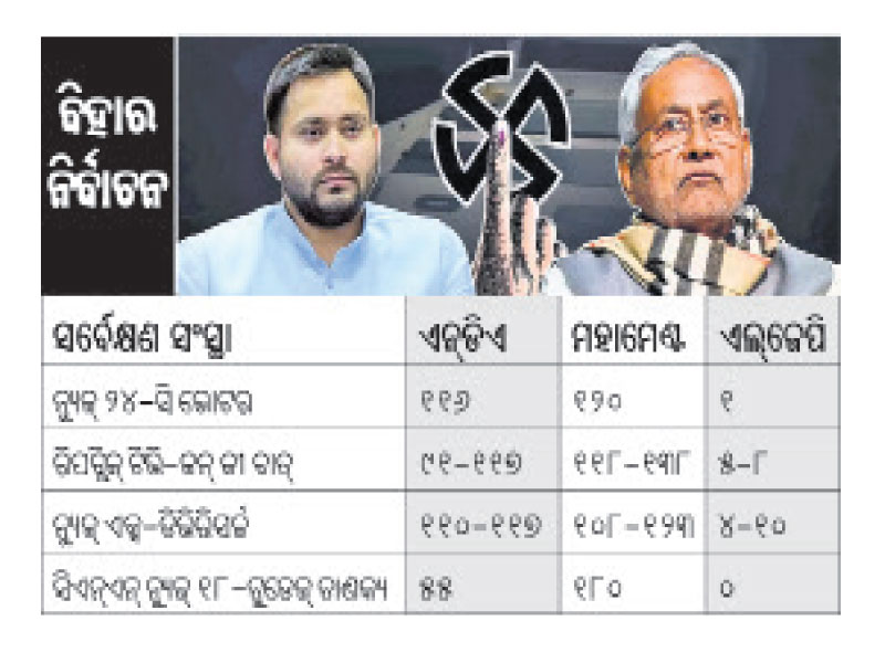 ନୂଆଦିଲ୍ଲୀ,୮ା୧୧: ଜାତୀୟ ଗଣତାନ୍ତ୍ରିକ ମେଣ୍ଟ (ଏନ୍ଡିଏ) ଶାସନ କରୁଥିବା ବିହାରରେ ଏଥର କ୍ଷମତା ପରିବର୍ତ୍ତନର ଆଭାସ ମିଳିଛି। ରାଷ୍ଟ୍ରୀୟ ଜନତା ଦଳ (ଆର୍ଜେଡି) ନେତୃତ୍ୱାଧୀନ ବିରୋଧୀ ମହାମେଣ୍ଟ ହାତକୁ ଶାସନର ଡୋରି ଯାଇପାରେ। ହିନ୍ଦୀ ଭାଷୀ ଏହି ରାଜ୍ୟରେ ତେଜସ୍ବୀ...