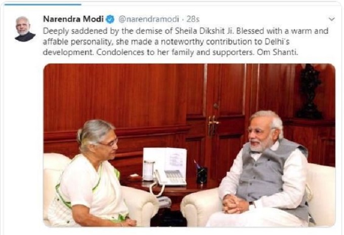 ଶିଲା ଦୀକ୍ଷିତଙ୍କ ବିୟୋଗରେ ଶୋକ ପ୍ରକାଶ କଲେ ପ୍ରଧାନମନ୍ତ୍ରୀ