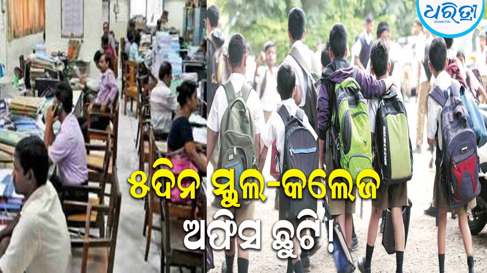 ସରକାରଙ୍କ ବଡ଼ ଘୋଷଣା, ୫ଦିନ ସ୍କୁଲ-କଲେଜ, ଅଫିସ ଛୁଟି!