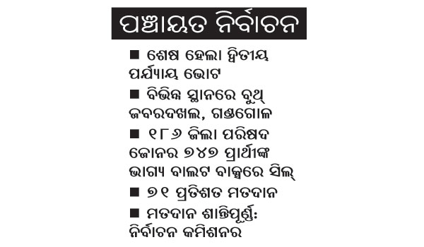 ଦ୍ୱିତୀୟ ପର୍ଯ୍ୟାୟ ନିର୍ବାଚନ ଶେଷ: ୧ଟା ସୁଦ୍ଧା ୬୫% ମତଦାନ