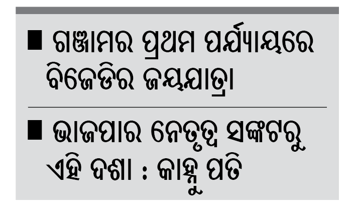 ବ୍ରହ୍ମପୁର ଅଫିସ,୨୮ା୨: ଗଞ୍ଜାମ ଜିଲାରେ ତ୍ରିସ୍ତରୀୟ ପଞ୍ଚାୟତ ନିର୍ବାଚନର ପ୍ରଥମ ପର୍ଯ୍ୟାୟ ୨୨ ଜିଲା ପରିଷଦ ଜୋନର ଫଳାଫଳ ଶନିବାର ପ୍ରକାଶ ପାଇବା ପରେ ରାଜନୈତିକ ଚର୍ଚ୍ଚା ଆରମ୍ଭ ହୋଇଛି। ସବୁ ଜୋନ ବିଜେଡି ସପକ୍ଷରେ ଯାଇଥିବାରୁ ବିରୋଧୀ ଦଳକୁ...