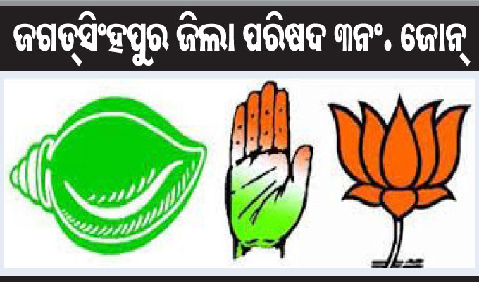 ଜଗତ୍ସିଂହପୁର ଅଫିସ, ୩୦ା୧: ଜଗତ୍ସିଂହପୁର ଜିଲା ପରିଷଦର ୩ନଂ.ଜୋନ୍ରେ ସଭ୍ୟ ପଦ ପାଇଁ ବିଜେଡି, କଂଗ୍ରେସ, ଭାଜପା ଓ ବିଏସ୍ପି ପକ୍ଷରୁ ପ୍ରାର୍ଥୀ ଦିଆଯାଇଥିବାବେଳେ ସେଠାରେ ବିଶେଷକରି ତ୍ରିମୁଖୀ ପ୍ରତିଦ୍ୱନ୍ଦ୍ୱିତା ହେବ ବୋଲି ଆଲୋଚନା ହେଉଛି। ନିର୍ବାଚନରେ କଂଗ୍ରେସ ଓ...