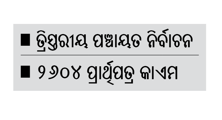 ବାରିପଦା ଅଫିସ,୨୪।୧: ତ୍ରିସ୍ତରୀୟ ପଞ୍ଚାୟତ ନିର୍ବାଚନ ପାଇଁ ନାମାଙ୍କନ ପତ୍ର ଦାଖଲ ପରେ ଶନିବାର ଯାଞ୍ଚ ପ୍ରକ୍ରିୟା ଶେଷ ହୋଇଛି। ମୟୂରଭଞ୍ଜ ଜିଲାରେ ୧୩ ହଜାର ୪୬୭ ପ୍ରାର୍ଥୀଙ୍କ ପ୍ରାର୍ଥତ୍ପତ୍ର କାଏମ ରହିଥିବା ବେଳେ ୯୯୯ ଜଣଙ୍କର ନାକଚ ହୋଇଯାଇଛି। ୨୬୧...